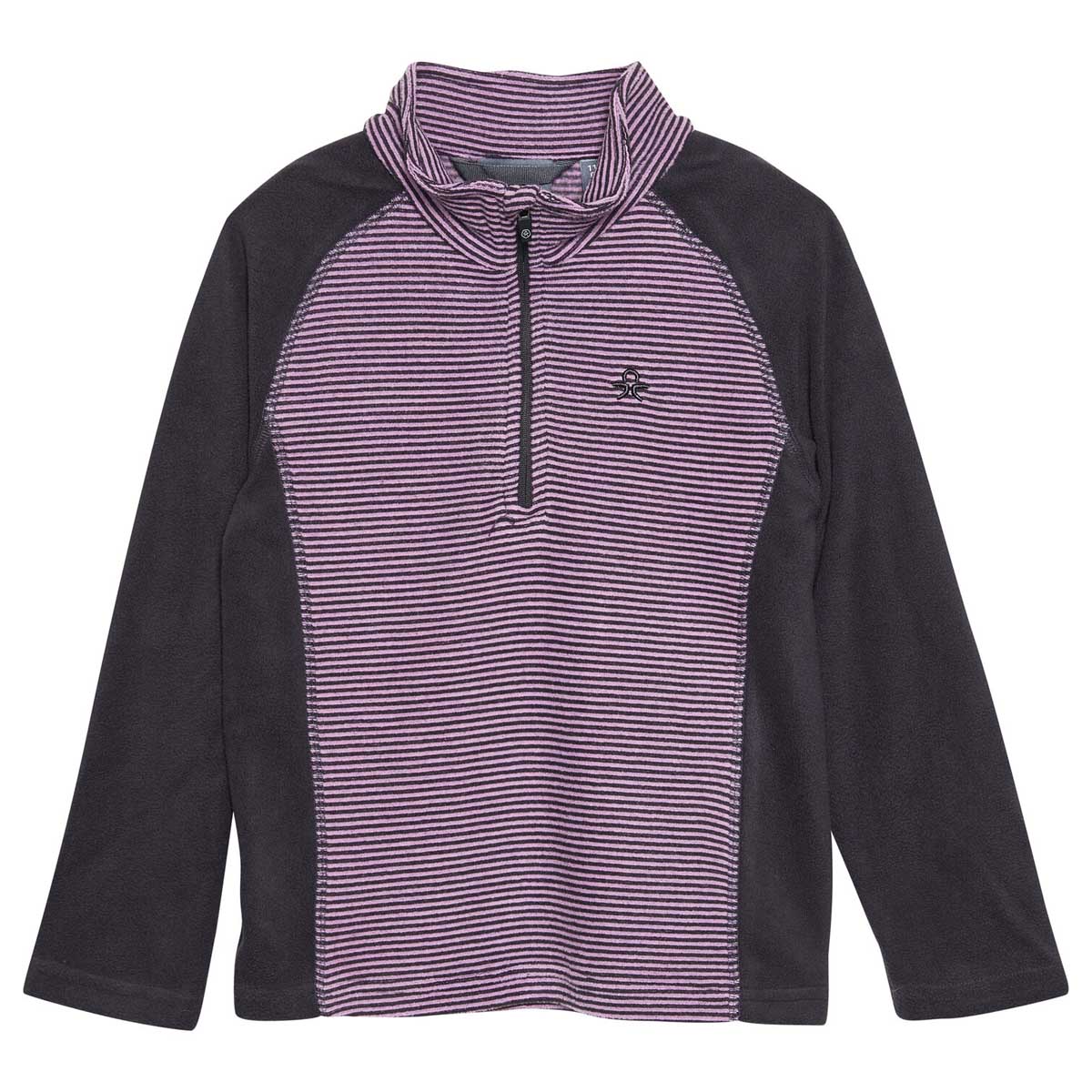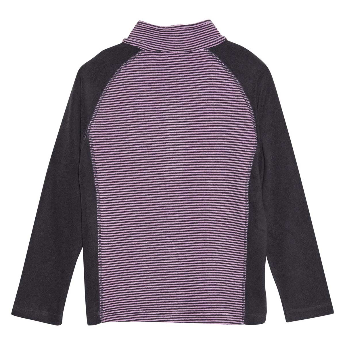 Gestreiftes Fleece-Shirt von COLOR KIDS. Das Shirt hat einen Kragen, der den Hals bedeckt, und einen Reißverschluss vom Hals bis zur Brust, sodass es leicht an- und ausgezogen werden kann.